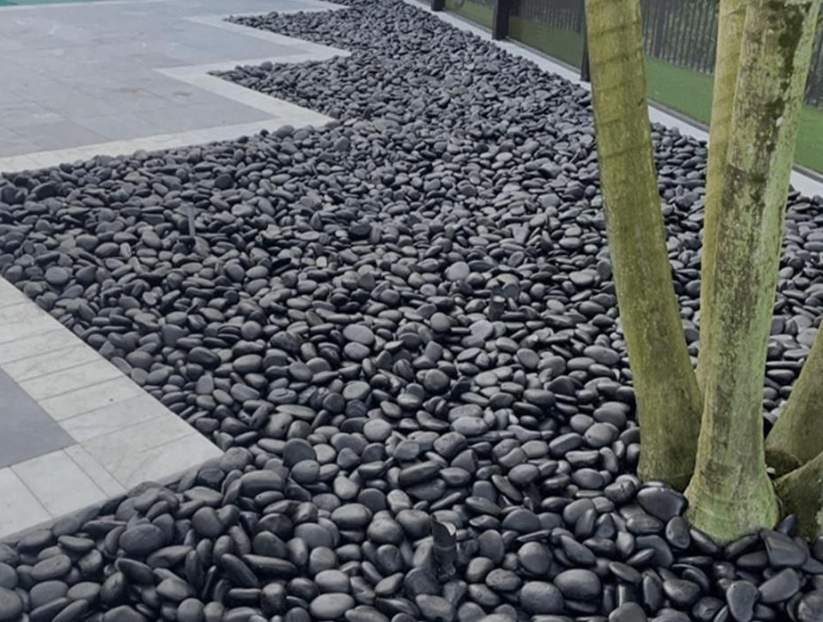 Naturally rounded stones ideal for pathways, water features, and modern landscape designs.